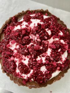 -Raw Strawberries and Raspberry Chocolate Mousse Tart