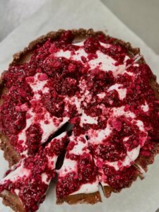 -Raw Strawberries and Raspberry Chocolate Mousse Tart